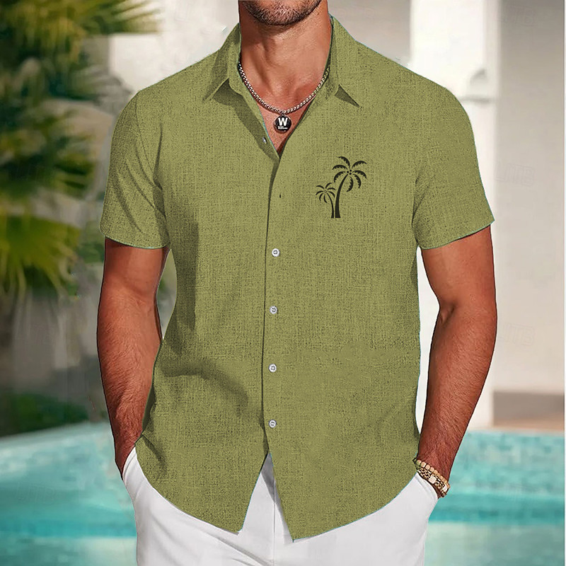 Men's Coconut Tree Tropical Plants Linen Shirt Beach Shirt Summer Hawaiian Shirt Short Sleeve Hawaiian Vacation Holiday Beach Wear Summer Spring Collar Collared Shirts Blue Green