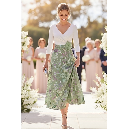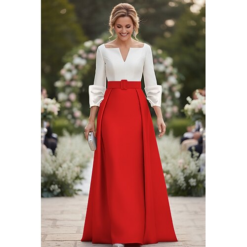 Linea ad A Tubino Colonna Lunghezza al pavimento Abito da invitata a nozze Abito Formale Abito da sera Abito da cerimonia per signora Manica 3/4 Scollo a V Elegante Formale Ospite di nozze