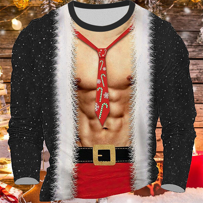 Men's Santa Claus Graphic Prints T Shirt Long Sleeve Shirt Crew Neck Christmas Outdoor 3D Print Black Red Orange Green Print Clothing Apparel Designer Basic Casual Rude Christmas