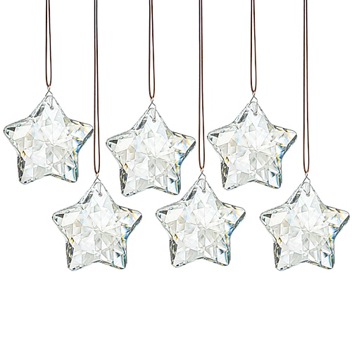 6 pezzi di ornamenti natalizi in vetro trasparente, decorazioni a forma di stella in vetro sfaccettato, centrotavola, acchiappa-luce solare, ornamenti in cristallo per finestre dell'albero di Natale,