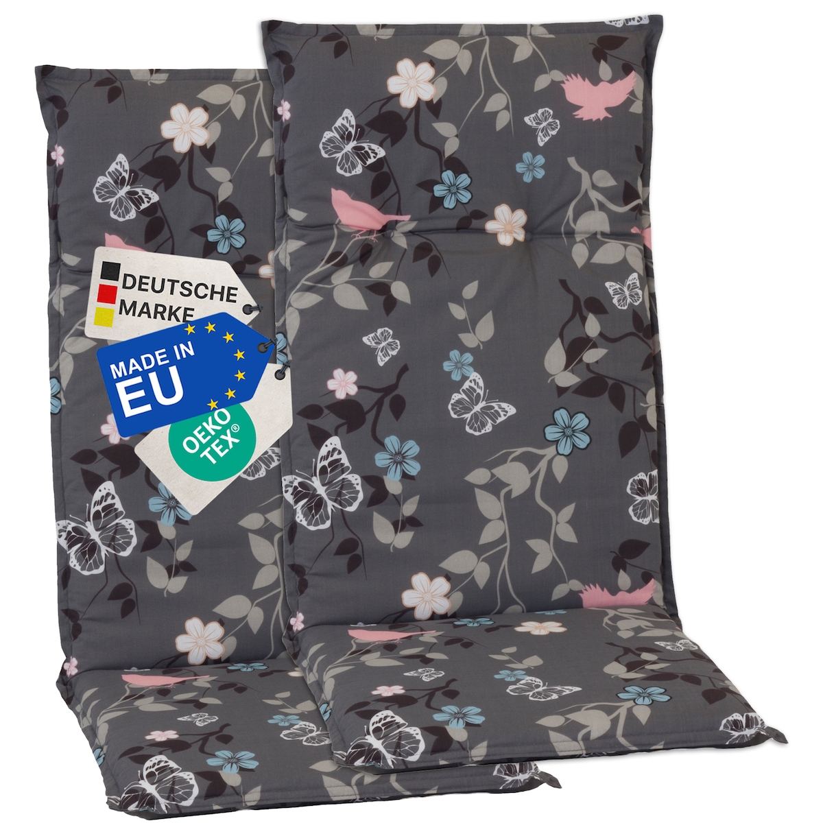 NYVI Gartenstuhl-Auflage Barcelona – Hochlehnerauflage für Gartenstühle Dessin:Vintage Flower M503,Anzahl:2er Set