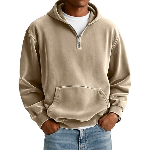 Per uomo Felpa con cappuccio Maglione Felpa con cappuccio e zip corta Blu Nero Verde chiaro Rosa Verde militare Con Cappuccio Semplice Tasca a marsupio Casuale Quotidiano Sport Outdoor Vintage Cool