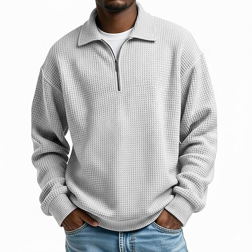 Per uomo Maglia Felpa a nido d'ape Maglione Felpa con zip corta Aalbicocca Nero Bianco Verde chiaro Borgogna Colletto Mao Semplice Tasca a marsupio Testurizzato Casuale Quotidiano Sport Outdoor