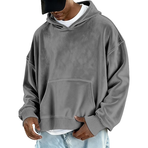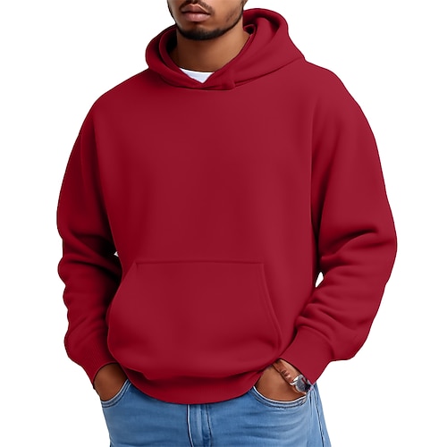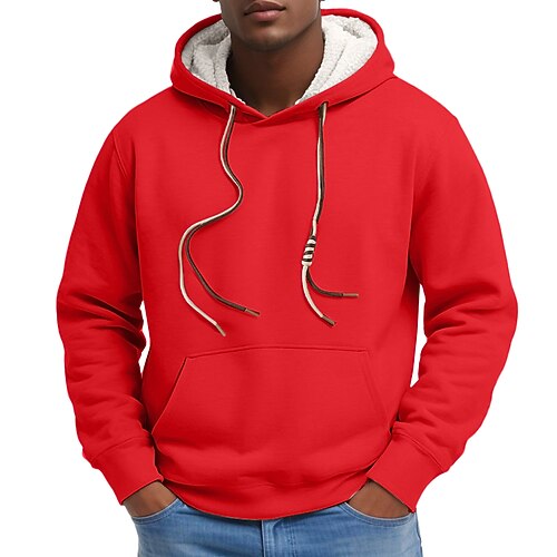 Per uomo Felpa con cappuccio Felpa con cappuccio in pile Felpa con cappuccio foderata in pile Nero Rosso Grigio chiaro Grigio scuro Beige Con Cappuccio Semplice Tasca a marsupio Casuale Quotidiano