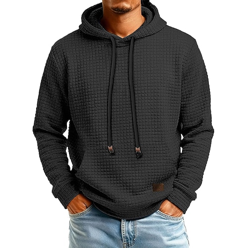 Per uomo Felpa con cappuccio Felpa con cappuccio a nido d'ape Aalbicocca Rosso bordeaux Nero Bianco Blu marino Con Cappuccio Semplice Tasca a marsupio Testurizzato Casuale Quotidiano Sport Outdoor