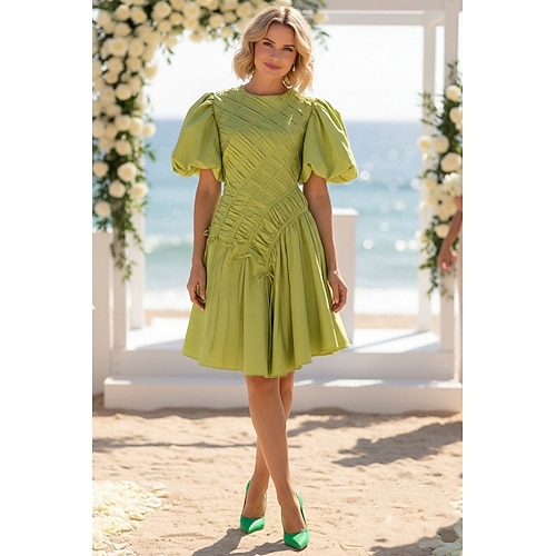Linea ad A Corto Mini Vestito da Festa Abito da invitata a nozze Abiti per invitati a matrimoni Quotidiano Manica Corta Girocollo Formale Ospite di nozze con Pieghe Volant