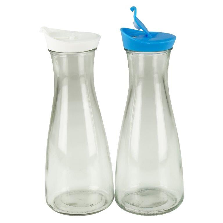 GVK ECO Glaskaraffe mit Deckel 1 Liter 2 Stück Weiß/Blau