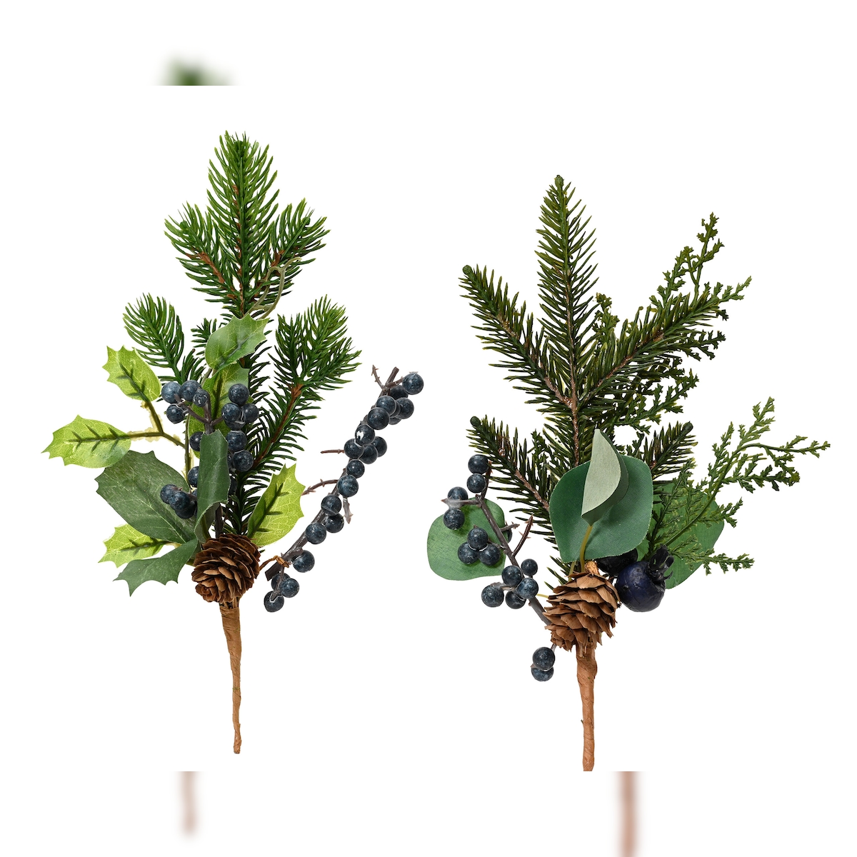 Künstliche Zweige 24cm mit blauen Beeren 1 Stück sortiert Grün / Braun