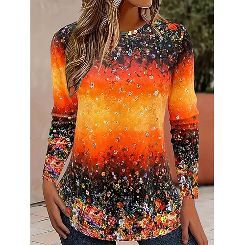 Per donna Maglietta Ombre Floreale Grafico Vintage Moda Elegante Manica Lunga Girocollo Top Regolari Quotidiano Weekend Stampato Arancione Autunno Inverno