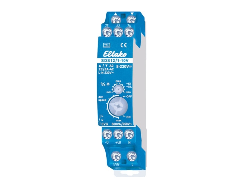 Eltako SDS12/1-10V, himmentimen toimilaite, DIN-kiskoon asennettava, sininen, CE, 600 W, 8 - 230