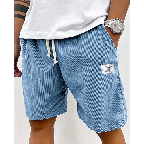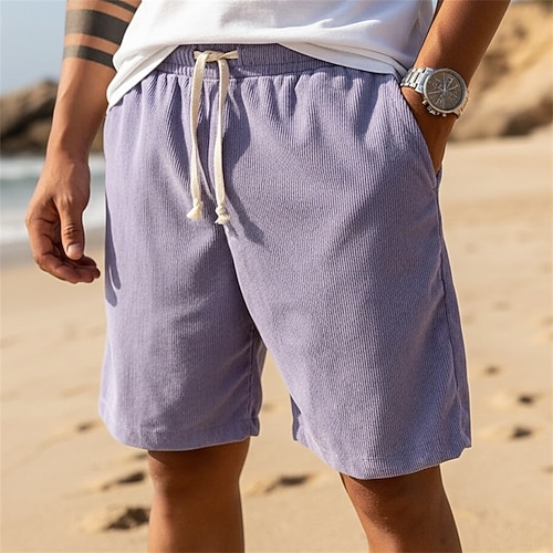 Per uomo Pantaloncini Estivi Shorts da Spiaggia Pantaloncini casual Pantaloncini di velluto a coste Coulisse Elastico in vita Tinta unica Comodità Lunghezza al ginocchio Quotidiano All'aperto Ferie