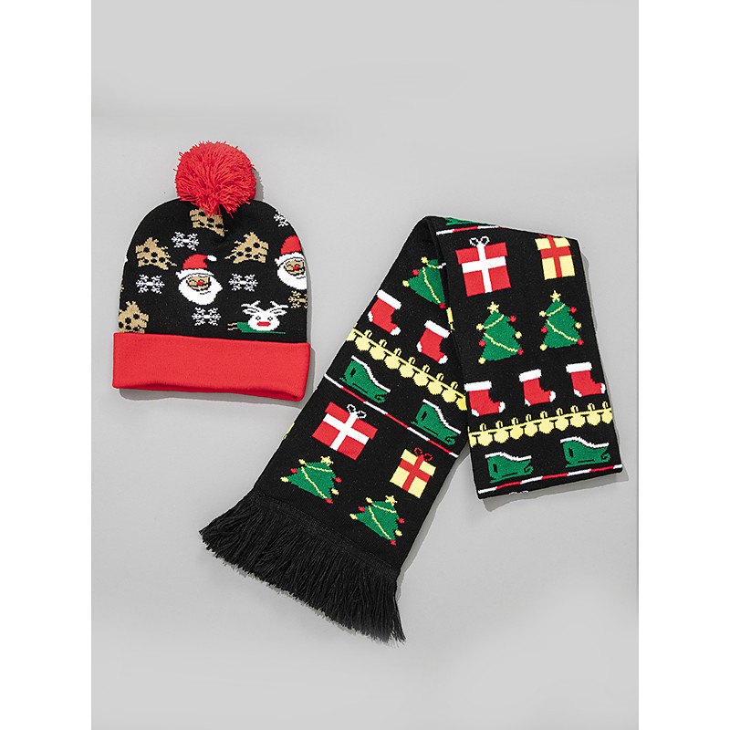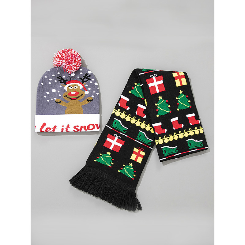 Women's Christmas Knit Hat and Scarf Set, Reindeer Design, Multiple Patterns, Cozy and Festive for Holiday Parties and Winter Wear