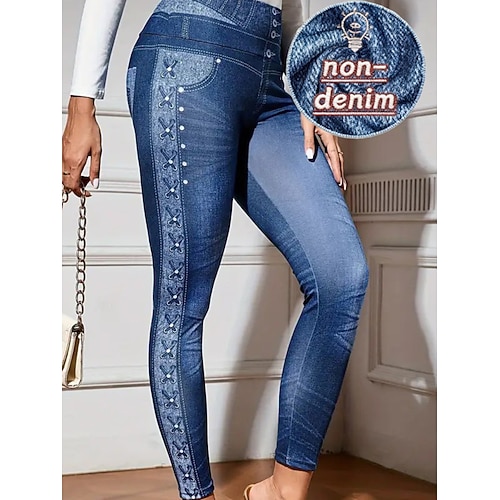 Per donna Jeans Leggings Jeggings Streetwear Casual Lunghezza intera Vita media Semplice Tasca Elastico in vita Comodo Micro-elastico All'aperto Vacanza Streetwear Blu Nero Primavera Autunno
