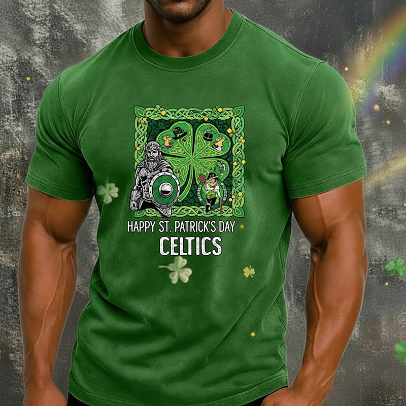 St. Patrick's Day Short Sleeve T-Shirt for Men Ireland Leprechaun Lucky Irish Shamrock Graphic Tee 3D Print Crew Neck St. Paddy's Day Top