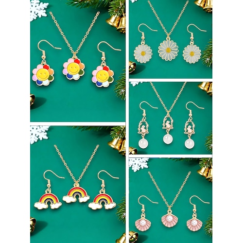 set di gioielli natalizi da donna composto da 5 pezzi, grazioso fiocco di neve, albero, pupazzo di neve, ciliegia set di collana e orecchini di Babbo Natale per le feste natalizie regali festivi
