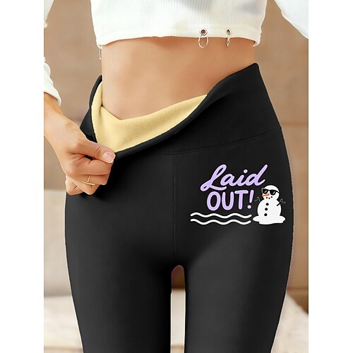 Per donna leggings foderati in pile Leggings Vacanza Essenziale Casual Lunghezza intera Vita Alta Lettera Calore Termico Comodo Confortevole Elasticizzato All'aperto Casual Casuale Nero Rosa Blu Verde