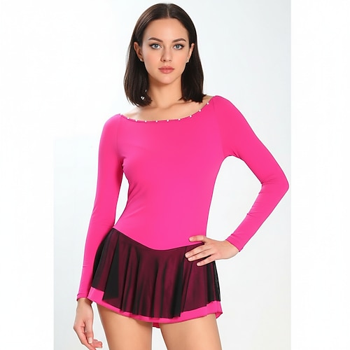 Abito da pattinaggio artistico Per donna Pattinaggio sul ghiaccio Vestito Rosa scuro Spandex Elasticizzato Allenamento Competizione Vestiti da pattinaggio sul ghiaccio Calore Termico Classico Manica