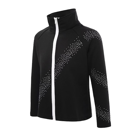 giacca in pile per pattinaggio artistico, giacca da pattinaggio sul ghiaccio da donna e da ragazza, top nero rosa blu elastico, abbigliamento da pattinaggio per allenamento e competizione, termico,