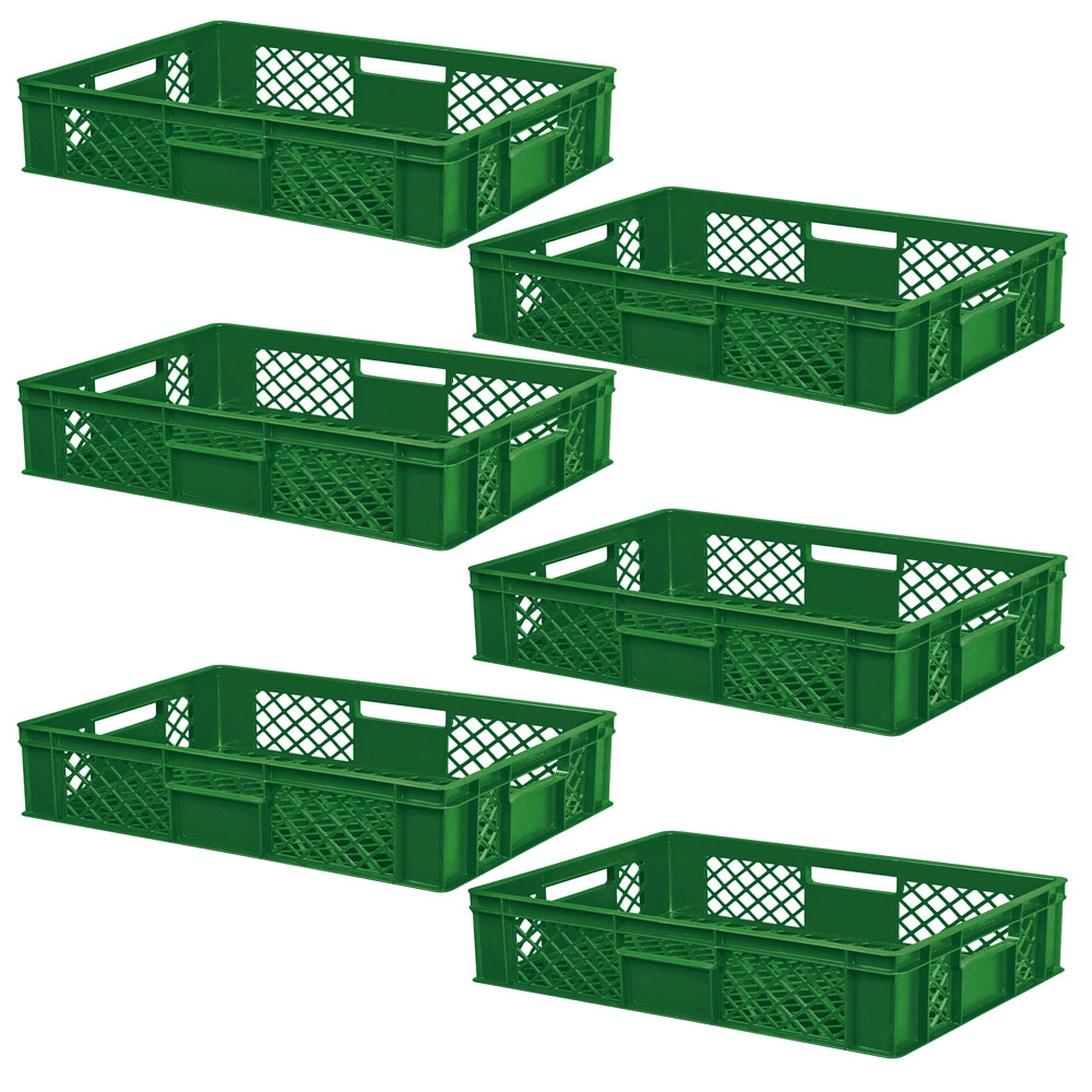 BRB 6x Eurobehälter durchbrochen/Stapelkorb, PE-HD grün, Industriequalität, lebensmittelecht, LxBxH 600 x 400 x 150 mm