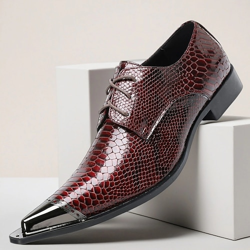 scarpe oxford stringate da uomo in vera pelle bordeaux con stampa serpente – calzature formali per feste e abiti da sera