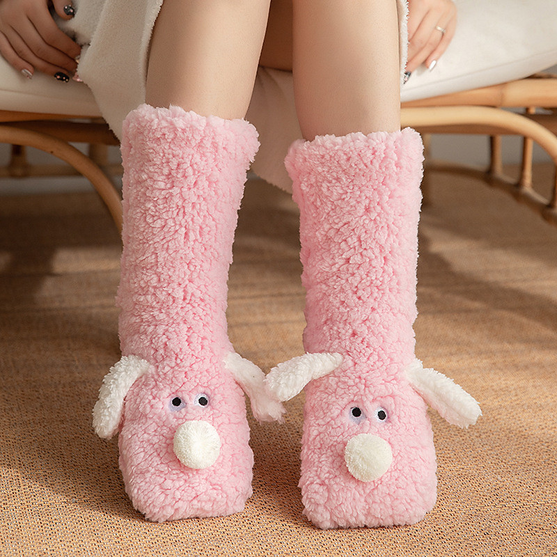 Cute Animal Floor Socks for Women, Plush Fuzzy Winter Indoor Snow Socks, Cozy Home Sleep Socks with Leg Covers, Soft Carpet Socks for Postpartum Daily Wear