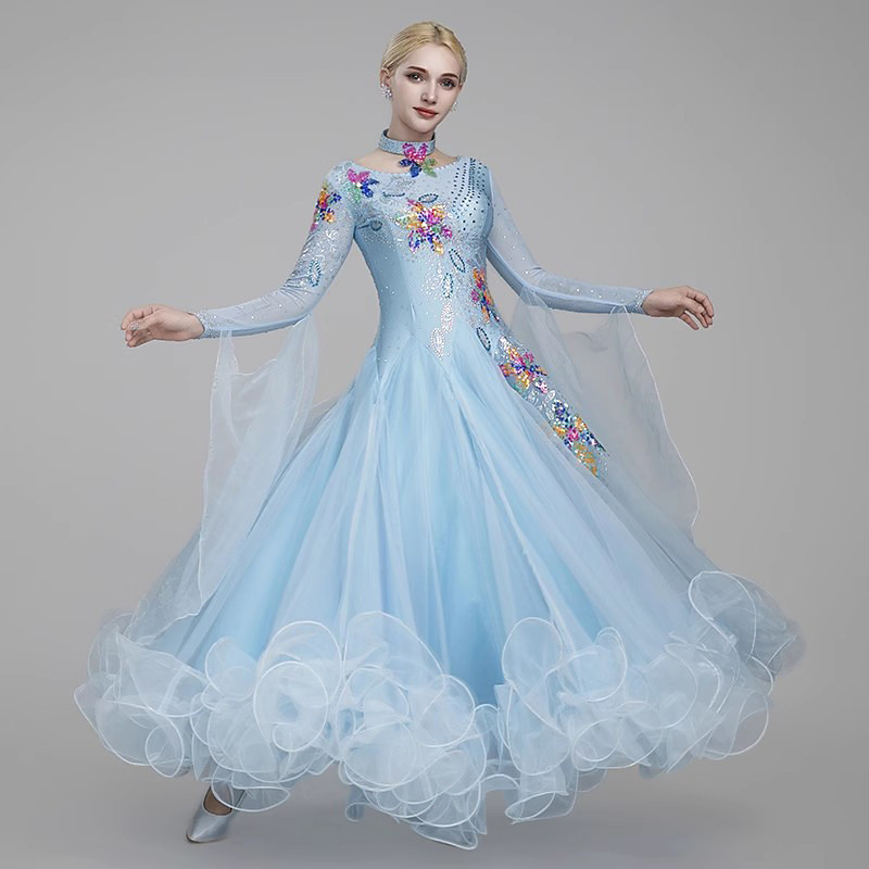 Gesellschaftstanz Kleid Stickerei Spleißen Kristalle / Strasssteine Damen Leistung Party Langarm Spandex Organza