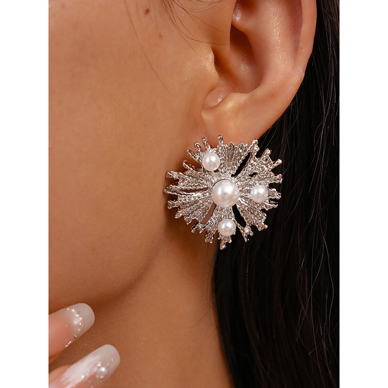 Women's Silver Pearl Statement Necklace and Earrings - Sparkling Party Jewelry for Evening, Cocktail and Special Occasions