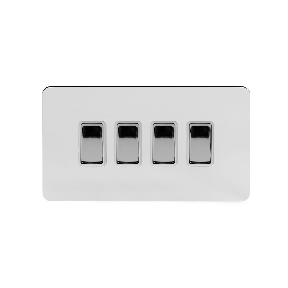 Soho Lighting Polished Chrome Flat Plate 4 Gang Switch With 1 Intermediate (3 x 2 Way Switch with 1 Intermediate) Wht Ins Screwless - Size: H 86mm X