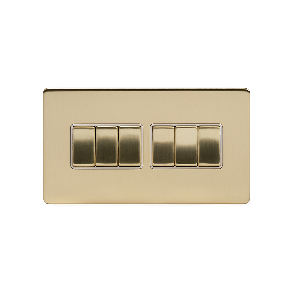 Soho Lighting Brushed Brass 10A 6 Gang 2 Way Switch Wht Ins Screwless