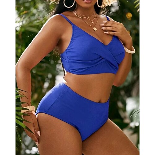Per donna Tankini Costume da bagno a due pezzi Incrociato Costumi da bagno Individuare Costumi da bagno Nero Blu Traspirante Asciugatura rapida Leggero Senza maniche - Nuoto Surf Spiaggia Estate