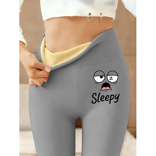 Per donna leggings foderati in pile Pantaloni in Pile Leggings Vacanza Vintage Stile Etnico Lunghezza intera Vita Alta Lettera Calore Termico Comodo Confortevole Elasticizzato All'aperto Casual