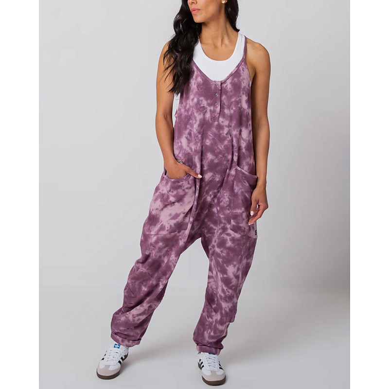 Women's Normal Jumpsuit Streetwear Tie Dye Sleeveless V Neck Pocket Vacation Street Loose Fit Black Blue Purple Fall