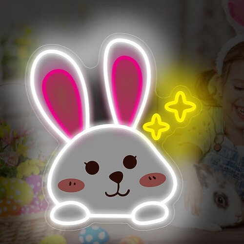 Decorazioni al neon con coniglietto di Pasqua, luci al neon colorate, dimmerabili, alimentate tramite USB, per interni, soggiorno, camera da letto, feste, decorazioni murali, regali per le feste