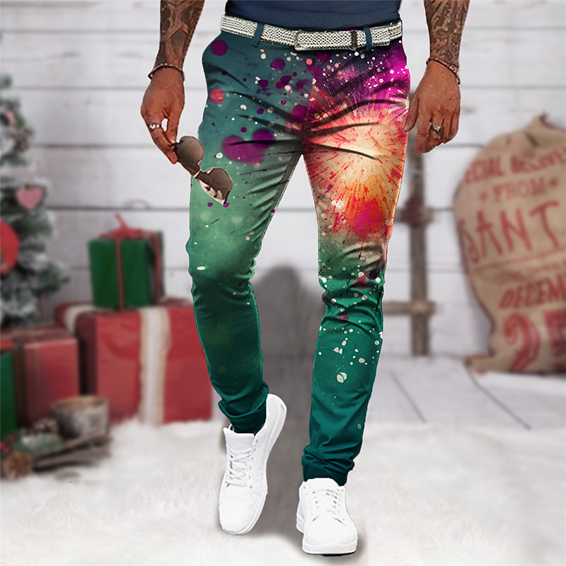 Christmas Graffiti Business Abstract Men's 3D Print Dress Pants Pants Trousers Outdoor Daily Wear Streetwear Polyester Navy Blue Blue Purple S M L Medium Waist Elasticity Pants