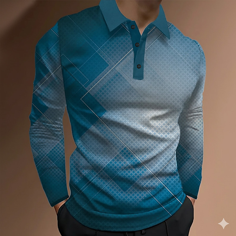 Men's Geometric Polo Long Sleeve Polo Shirts Collared Shirts Casual Business Casual Business Athleisure Daily Wear Buttons Pocket 3D Print Spring Fall Winter Blue Purple Green