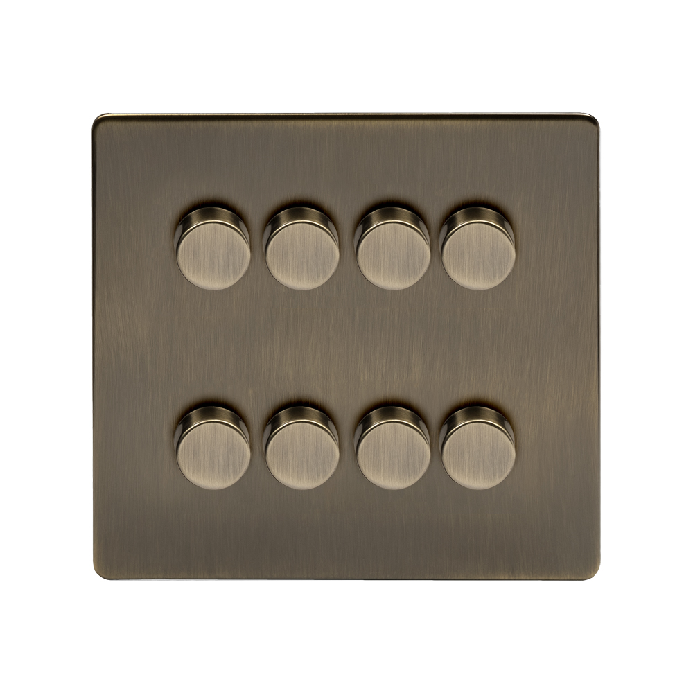 Soho Lighting Antique Brass 8 Gang 2 -Way Intelligent Dimmer 150W LED(300w Halogen/Incandescent) - Size: H 86mm X W 86mm