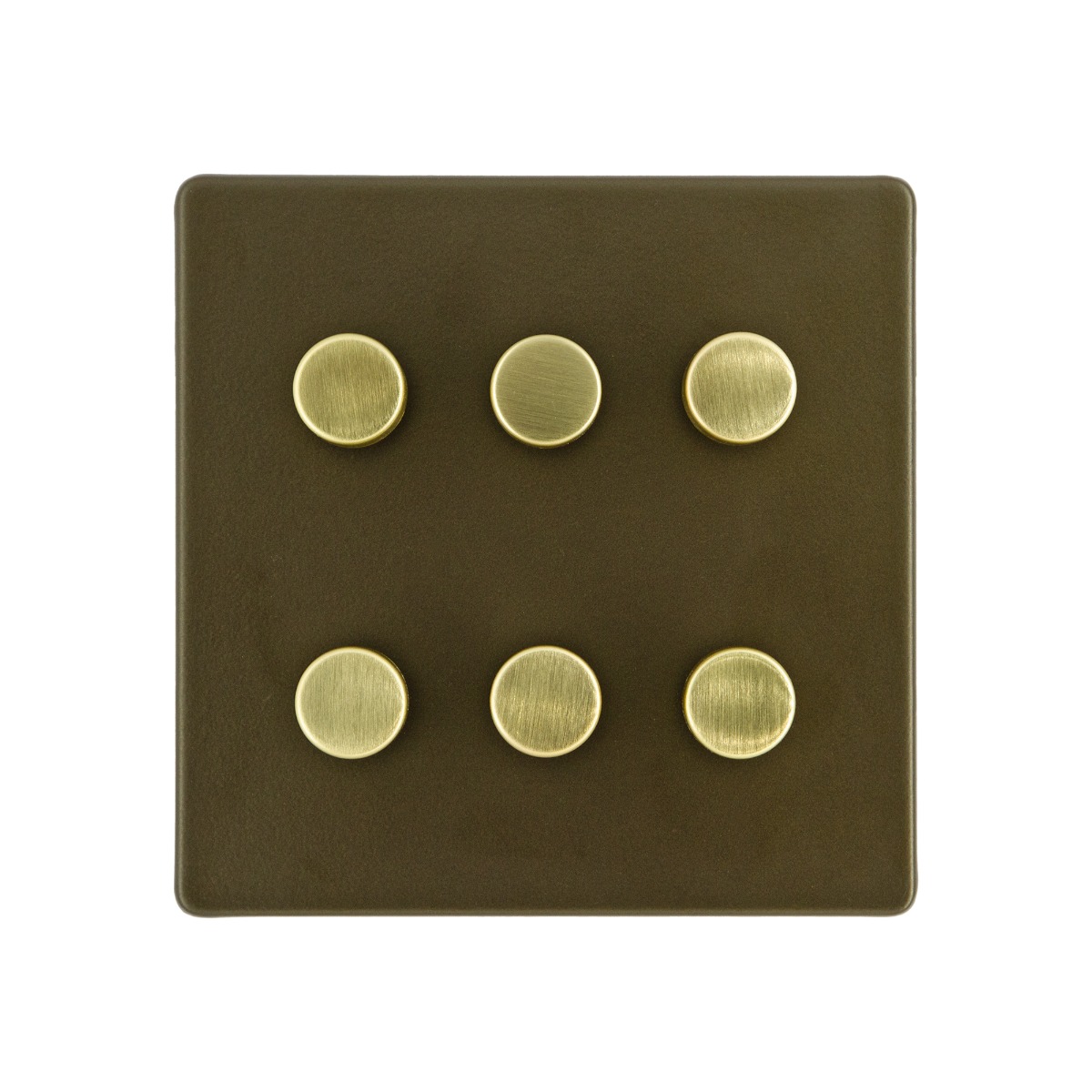 Soho Lighting Bronze with Brushed Brass Flat Plate 6 Gang 2 -Way Intelligent Dimmer 150W LED (300w Halogen/Incandescent) - Size: H 146mm x W 146mm