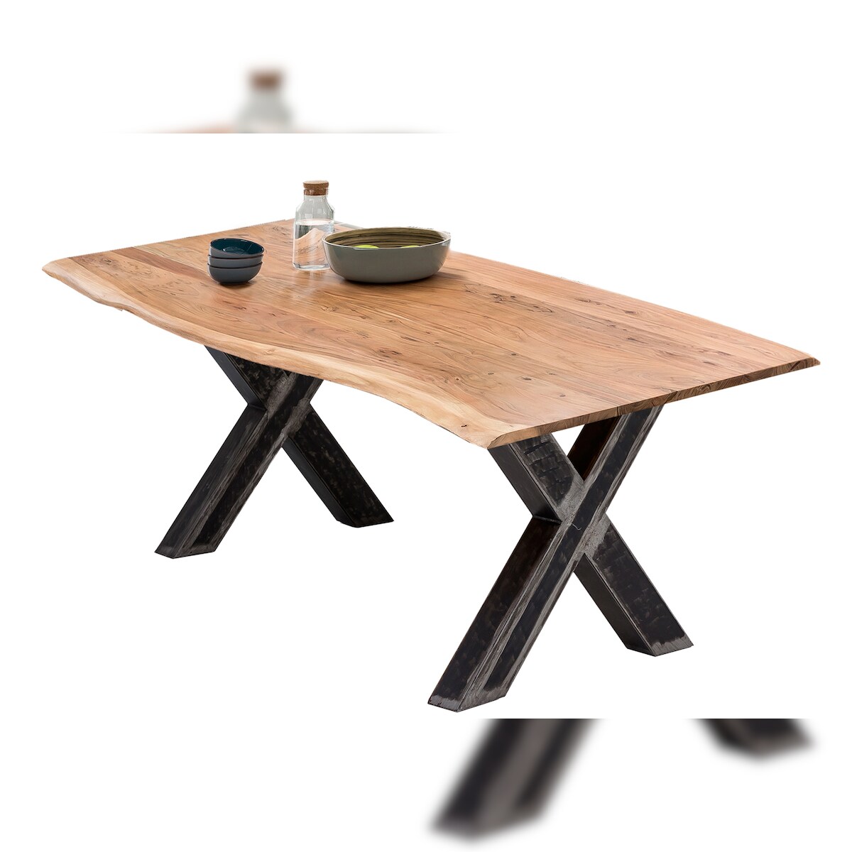 SIT Möbel Esstisch 180 x 90 cm | 36 mm Platte Akazie mit Baumkante | Gestell Metall X-Form | B 180 x T 90 x H 77 cm | 15561-41 | Serie TABLES & CO