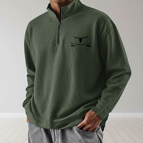 Per uomo Mucca Felpa Quotidiano Classico Casual Cowboy Western Collo alla coreana Zip a un quarto All'aperto Casa Ufficio Lavoro Nero Blu Marrone Verde militare Grigio Con zip Autunno Inverno