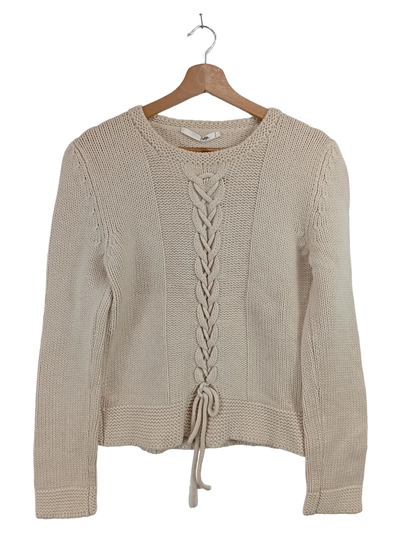 BOTTEGA Damen Pullover Beige Wolle Zopfstrickmuster