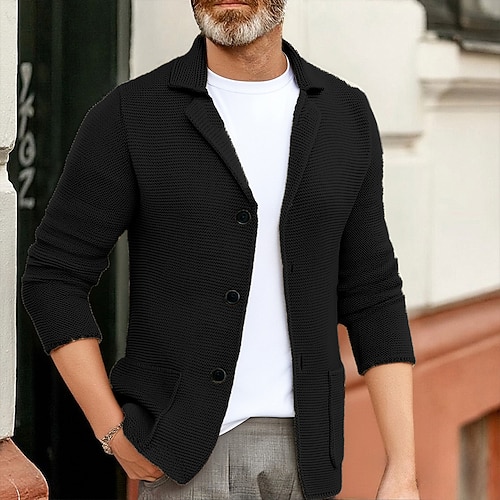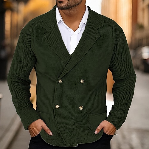 Per uomo Cardigan Maglione Corto Maglione a maglia Giacca cardigan A Coste Lavorato a maglia corto Maglia Top Regolari Tasca Colore Solido / Tinta Unita Colletto a Camicia Moda Classico Vacanza