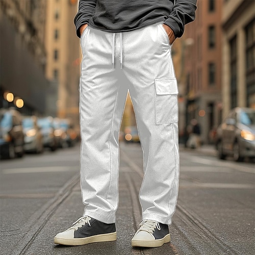 Per uomo Pantaloni Cargo Shorts Coulisse Tasca Multi-tasche Tinta unica Antivento Indossabile Lunghezza intera All'aperto Vacanza Quotidiano Vacanza Streetwear Nero Bianco Inelastico