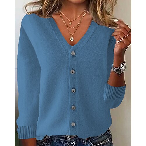 Per donna Felpa Cardigan Moda Streetwear Quotidiano Tinta unica A Coste Scollo a V Lavorato a maglia Manica Lunga Top Regolari Maglia Ferie Uscire Weekend Nero Bianco Autunno Inverno
