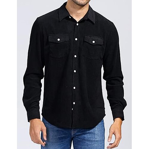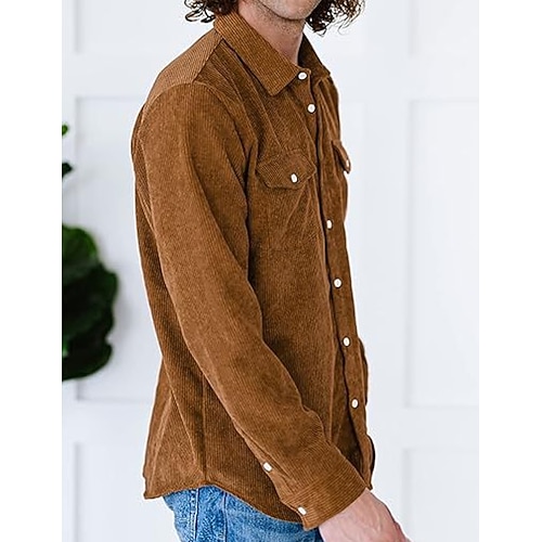 Per uomo Camicia Camicia di Velluto a Coste Camicia con Bottoni Camicia cargo Nero Marrone Verde Manica Lunga Tinta unica Collo ripiegato Casuale All'aperto Caldo Abbigliamento Vintage Moda Casual