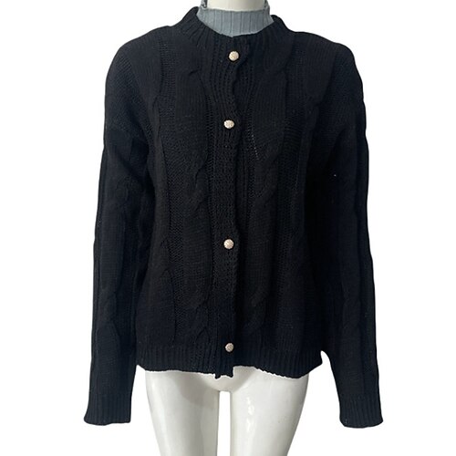 Per donna Cardigan Casual Morbido Tinta unica Treccia Colletto a Camicia Tasca Lavorato a maglia Manica Lunga Top lunghi Maglia Quotidiano Uscire Weekend Nero Rosso Autunno