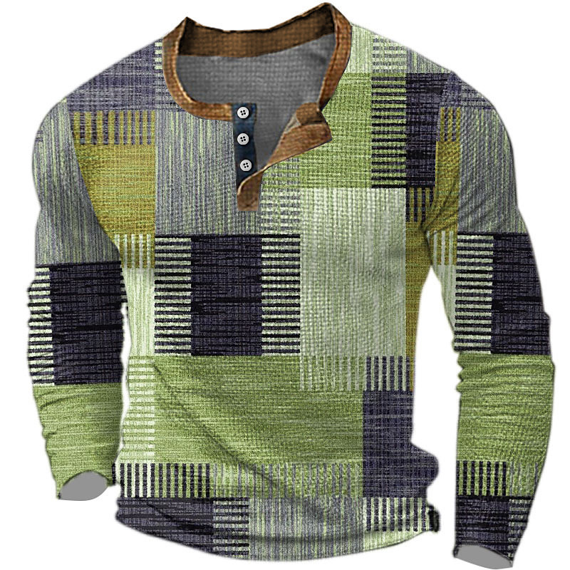 Men's Graphic Color Block Waffle Henley Shirt Casual Style Classic Style Long Sleeve 3D Print Fashion Designer Basic Daily Outdoor Spring Fall Blue Brown Green Gray Henley Henley T-Shirt