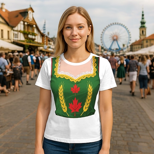 bavarese Monaco Tedesco Corte T-shirt Stampa Dirndl Grafico per Per donna Adulti Stampa 3D per Birra Oktoberfest Casual Quotidiano