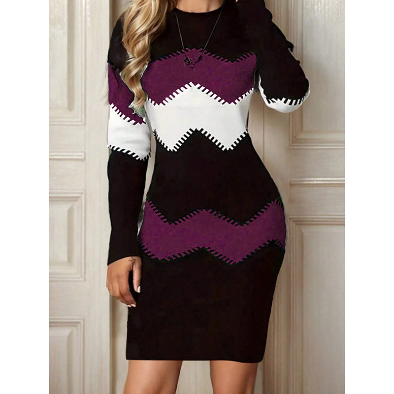 Women's Mini Dress T Shirt Dress Tee Dress Shift Dress Vacation Casual Holiday Date Regular Fit Graphic Geometric Long Sleeve Crew Neck Black Blue Purple Green Fall Winter