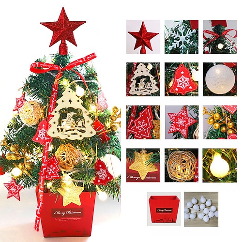 mini ornamento dell'albero di natale fai da te 50-60 cm decorazione dell'albero di natale del desktop ornamento dell'albero di natale con luci abito rosso oro decorare luci di natale