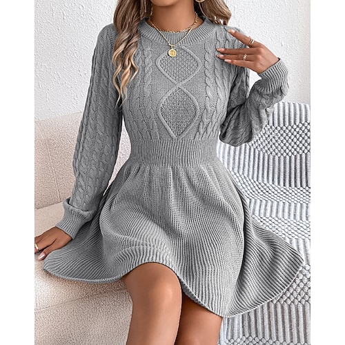 Per donna Mini Abito Abiti in tessuto di lino e policotone Abito in maglia Moderno Quotidiano Natale Uscire Vestibilità regolare Semplice Manica Lunga Girocollo Nero Vino Grigio Autunno Inverno